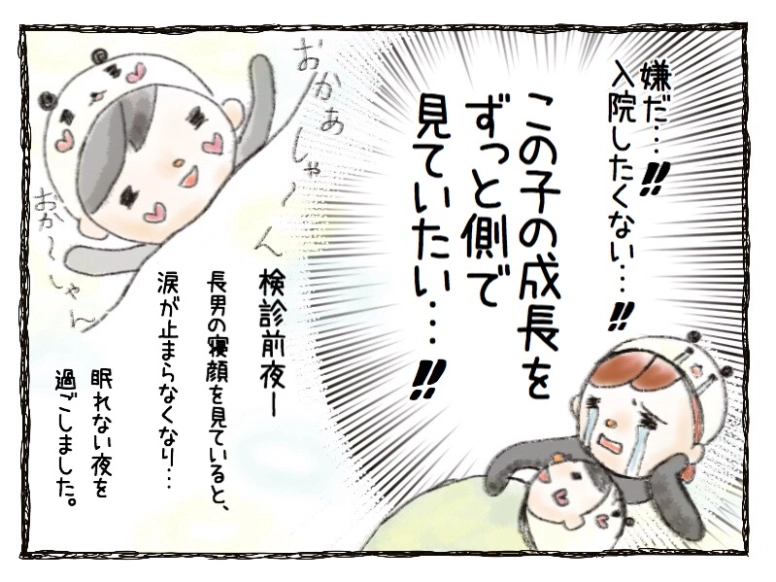 主人や母は、「何も心配しなくていい。」と言ってくれましたが、主人は仕事で夜遅く、母の体調のことも心配。主人のご両親は県外におり、長期的に来て頂くのは難しい状況。もちろんお腹の赤ちゃんのことを第一に考えなくてはいけないのですが、現実的に長男のことを考えると、私が入院できる状況ではありませんでした。子宮口も柔らかく開きやすい状態だったので、悪い考えしか浮かばず…診察室に入るまでの時間が、とてもとても長く感じられました。ついに入院することになるのか?次回に続きます。