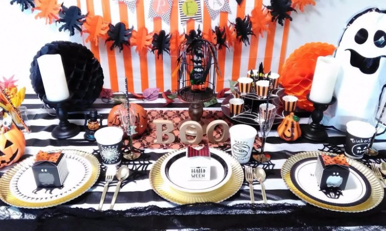 黒とオレンジが主役!ハロウィーンらしい配色のテーブルコーディネート