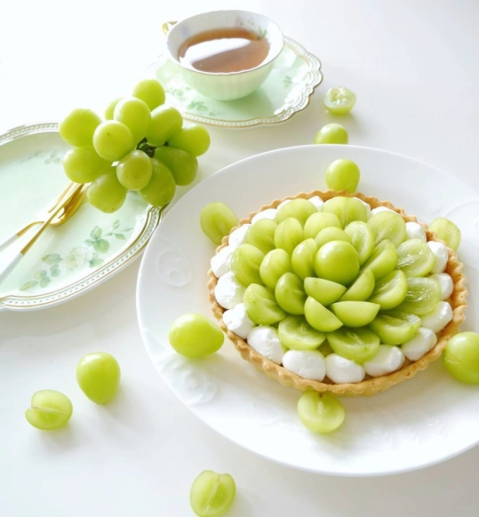 みずみずしいシャインマスカットを贅沢に使用したタルト。お花のようなデコレーションにセンスを感じますね。豪華な見た目はインスタ映え◎です。香り高い紅茶との相性も抜群♪秋しか食べられない、旬のぶどうを使用しておいしいスイーツを作ってみませんか。
