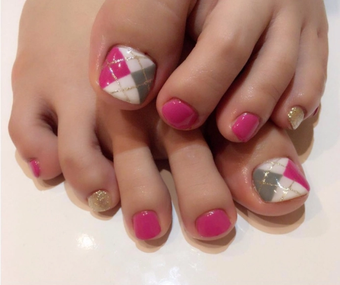 大きめアーガイルを楽しむフットネイル