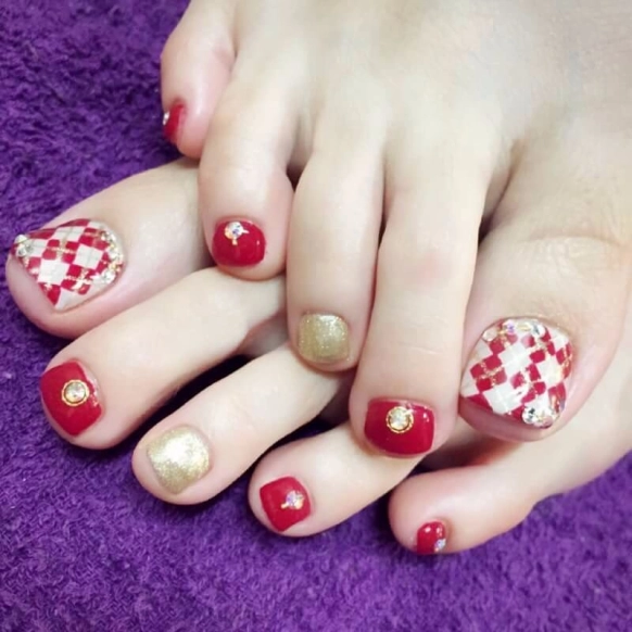 ハンドのみならず、フットにも取り入れたいアーガイル。使うカラーによって、キュート・クール・ゴージャスなど、さまざまな印象を作れます。この冬はアーガイルを取り入れたネイルにチャレンジしてみましょう!