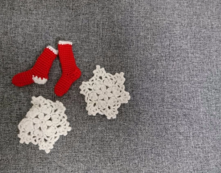 ポンポン作りの毛糸が余ったら、かぎ針を使った編み物にチャレンジしてみては?写真のようなちいさなオーナメントであれば、編み物が好きな方は、一つ20分もあれば仕上がってしまうでしょう。後ろにゴムを縫いつけたら、可愛いクリスマスヘアアクセにもなりますよ♪