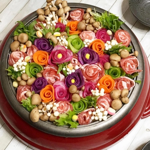 ホームパーティの主役に!くるくる巻くだけ”花畑鍋”