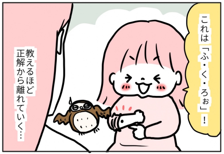 ほくろ…ふくろう…うん、似てる!似てるけど…わからんくなるほど似てるか…?イチコ、語尾の伸ばす発音(ふくろうの「う」や、がっこうの「う」など)を無いものと扱うことが多々。そのためふくろうとほくろをより混同しやすいのでしょう…てことは、ふくろうとふくろは同じ…!?3歳児の言葉、謎がたくさんです。