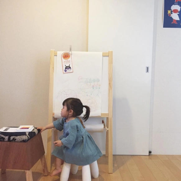 @ hiroe_35さんは、IKEAのボードにロールペーパーをセット。これなら紙が床に散らばることもなく、お絵かきが楽しめますね。