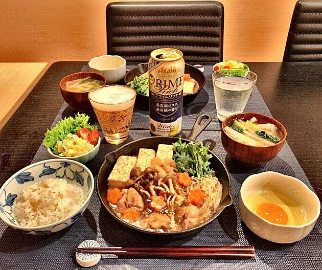 伊賀焼窯元「かまどさん」のシックな柄がかわいいこちらの食卓では、すき焼きを家族で囲むそう♪「かまどさん」はお米を炊くこともできる優れモノ。蓋が二重になっている重層構造なので、圧力鍋の機能を発揮してくれるのだとか。吹きこぼれも少ないという口コミもありました。ひとつ持っていると、大活躍しそうです!