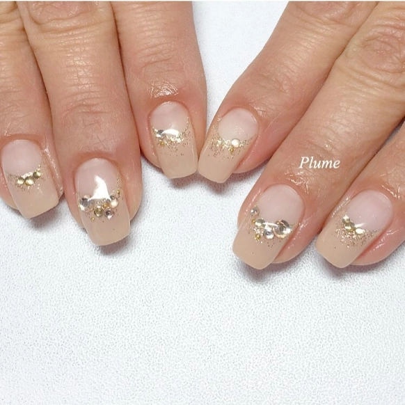 色数を絞ったエレガントな王道フレンチ。自分の肌に馴染むカラーを選んでシンプルに仕上げられていますが、よく見るとラメやストーンがとってもキレイ!そんな「よく見ると」という点が、上品さを演出してくれますよね♪