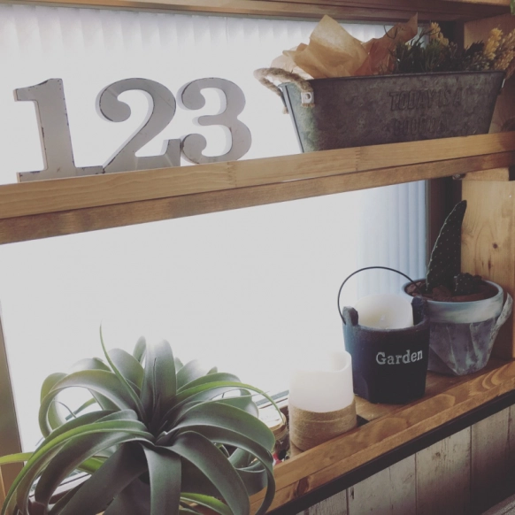 エアープランツは土のいらない植物。見た目はオブジェのような植物なので、吊るしたりインテリア小物として扱ったりと、いろんな使い方をすることができます。@2nikonikoさんは、アンティーク感溢れる棚にアクセントとしてエアープランツのフェイクグリーンを使っていました。他のインテリアともなじみが良いので、どこに置いても違和感がなさそうです♪■エアープランツ29cm 925円(税別)