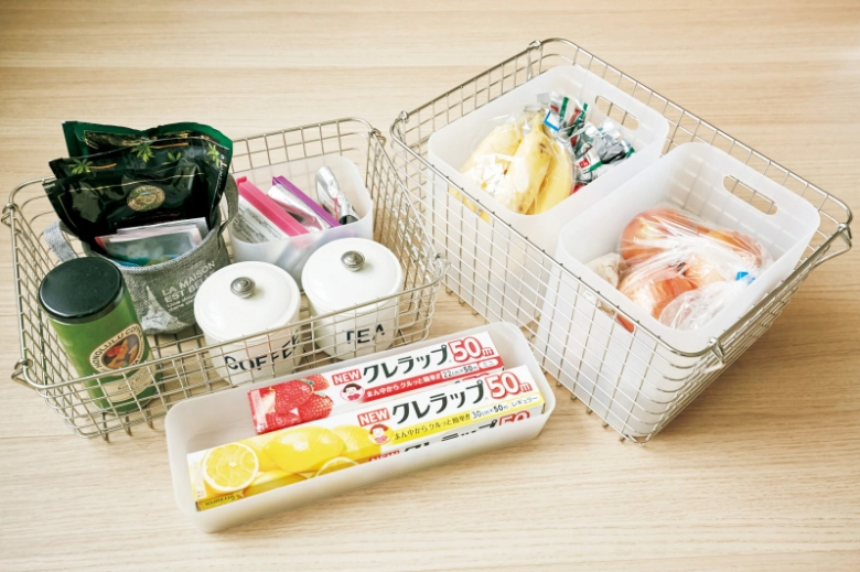 ・見えるスペースの収納にはホワイトのカゴを使ってみて