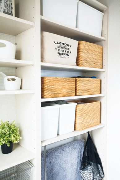 ・布製かごアイテムを使うとナチュラルテイストな収納スペースに