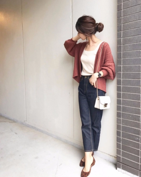 定番アイテムのデニムとカーディガンを合わせた、カジュアルコーデをご紹介します。