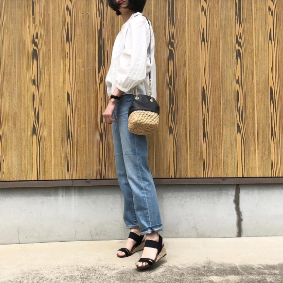 この日の@matsuten522さんのコーディネートは、トップス・ボトムスどちらもユニクロのもの。白のリネンブレンドギャザーブラウスに、薄い色味のデニムを組み合わせてさわやかにコーデ。手首や足首を見せて、抜け感を出しているのもマネしたいテクですね♡