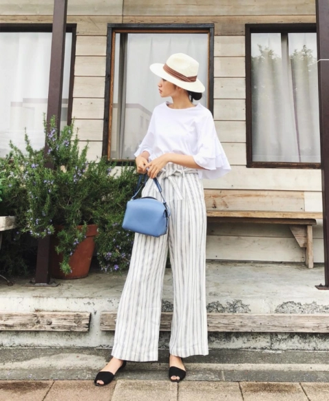 そんな麦わら帽子と合わせるアイテムは七分丈やワイドパンツなど、ゆったりしたものをチョイスしてみてはいかが?