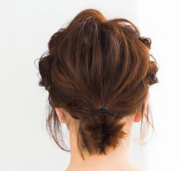 こちらは下部分でざっくり髪をまとめで結んだ後、くるりんぱを何度も繰り返しただけ!アレンジ前にコテで波ウェーブを作っておけばさらにこなれ風ヘアにアップデートすることも可能です♡