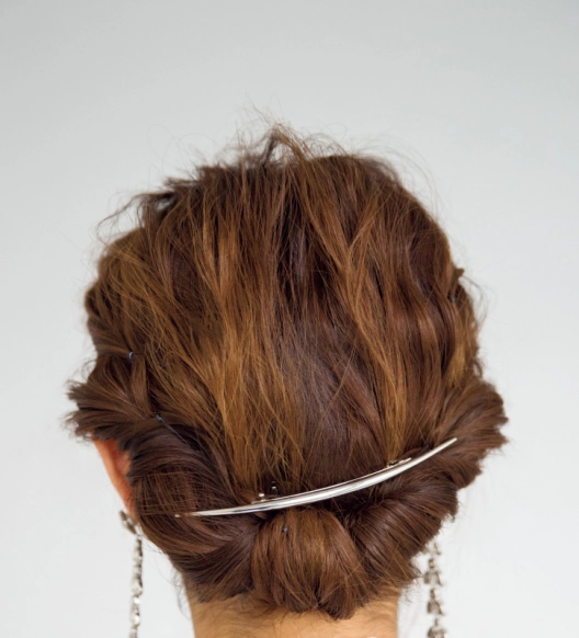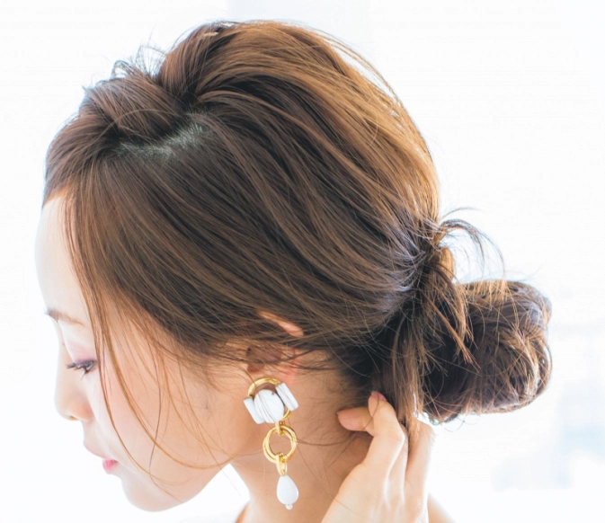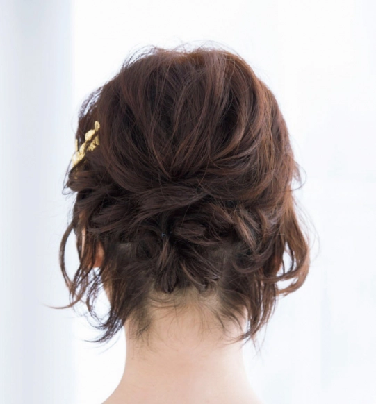 ヘアアクセを使って、ボブの長さをクラシカルなシニヨン風にしたヘアスタイルです。適当にひとつに結んで、結び目部分を隠すようにアクセをONさせるだけの簡単アレンジ。頭の形に合わせて、トップ部分の毛束をつまみ出してラフに崩すとよりオシャレ度が加速!うなじをきれいに見せた大人ヘアで異性の心をグッとつかんじゃいましょう♡