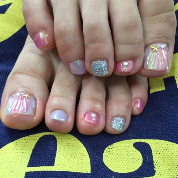 ネイルサロンでじわじわと人気アップしてきているのがマーメイドネイル!立体的なプリーツデザインが貝殻をイメージさせます。マーメイドネイルはブルー系のネイルを使って海っぽくアートするのも素敵ですが、ピンク系をチョイスするとプリンセス風に♡@miipm27さんのようにラメネイルをアクセントにすると、光をまとったきれいなフットネイルができちゃいます。