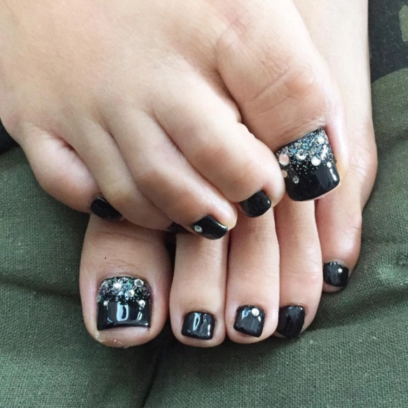 かっこいい大人のシンプルネイルをしたいなら、ブラックがおすすめ!つや感をプラスしたブラックネイルなら、夏にもぴったりです。ブラックの単色ネイルはちょっと暗い印象に見えてしまう場合もあるので、こちらの写真のネイルのようにグリッターやストーンをプラスして、夏らしさをプラスしましょう!