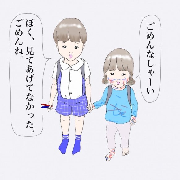 ヒィーーーーーーーーーーー!何?!その顔何?!何やってんのーーーーー??引き出しからコッソリ出してきた水性ペンで顔や体にお絵描きしていた五男。「ごめんなしゃーい」はいはい…もう…可愛いから許します!!不幸中の幸い、水性ペンで良かった!油性じゃなくて本当に良かった!!母のことを思って水性ペンを選んでくれたのかな?この親孝行息子め!(壊れかけ)タオルでゴシゴシ拭いて、保育園へ送り、何とか遅刻せずに出勤しました。