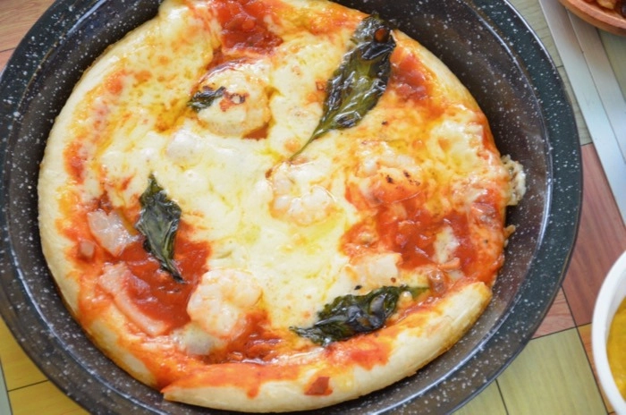 ・子どもも大好き!エビとベーコン、バジルのピザ