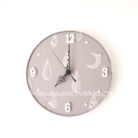 こちらは、生活雑貨を作る教室でDIYしたオリジナルの掛け時計です。葉っぱと月のモチーフの布と厚紙からできているとは思えないクオリティー☆布のデザインで部屋の雰囲気を変えることもできるので、いろんな柄で作ってみたくなりますね。