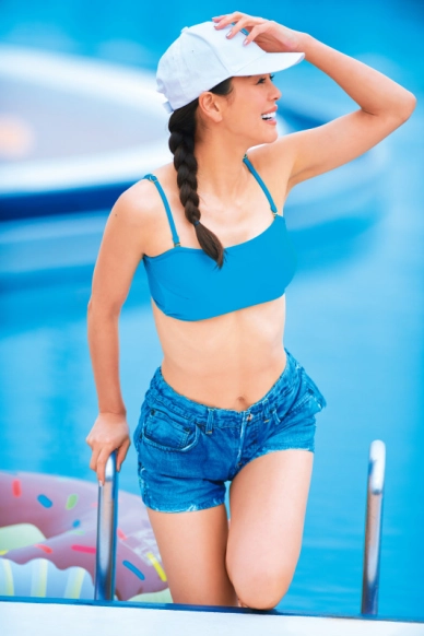お腹周りをさりげなくカバーするならハイウエスト&タンキニでお腹をやんわり隠しましょう!タンキニの揺れる裾がお腹のラインを自然にぼかし、ハイウエストでプリっと出ているお腹のお肉をしっかりホールド☆大人かわいいデザインの水着にすれば気分もUP。プールサイドでは薄手のガウンなどを羽織れば、体型カバーだけでなく紫外線もカットできます。