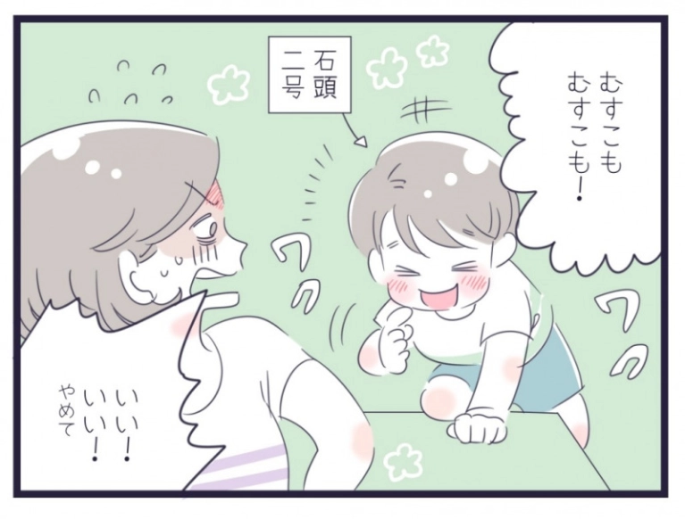 それだけ元気なら大丈夫かな・・・(苦笑)。楽しくなって勢い余ったんだと思うけど、手加減を知らない子どもの一撃はなかなかこたえます…。それにしても、子どもってなんでこんなに石頭なんだろう…?
