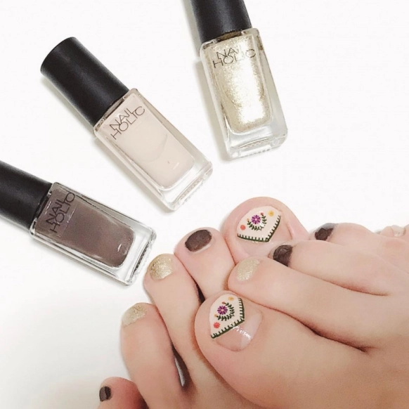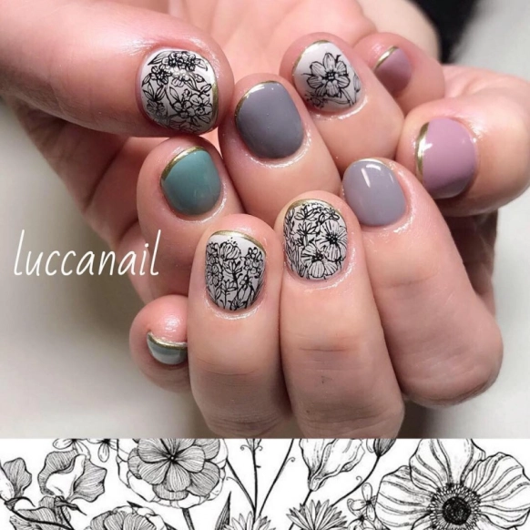 こちらは、少し北欧感のただよう花柄をアクセントにいれたスモーキーネイル。あえてショートネイルに施すことで、派手すぎずかわいい印象に見えますね。@kaori_luccanailさんのネイルの花柄は手書きですが、ネイルシールなどを上手に使えば簡単に真似することができますよ。