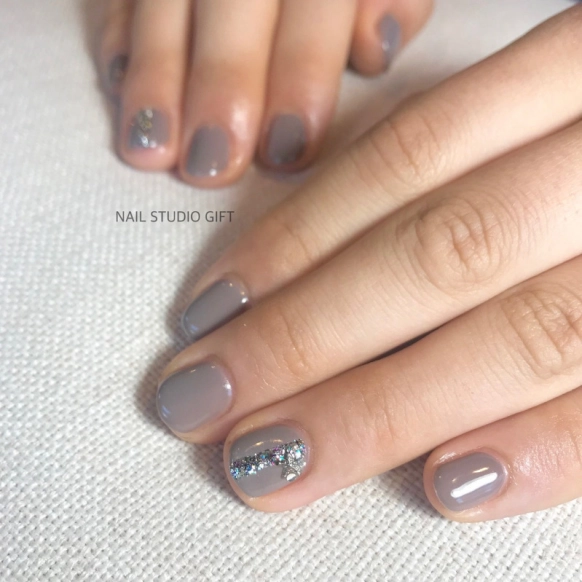 こちらは、ラベンダーとグレーのあいだのようなスモーキーカラーのグラデーションネイル。あえて装飾はせずシンプルな感じがとってもオシャレ。グラデーションだけでオシャレ感がでるのも、スモーキーネイルの特長です。