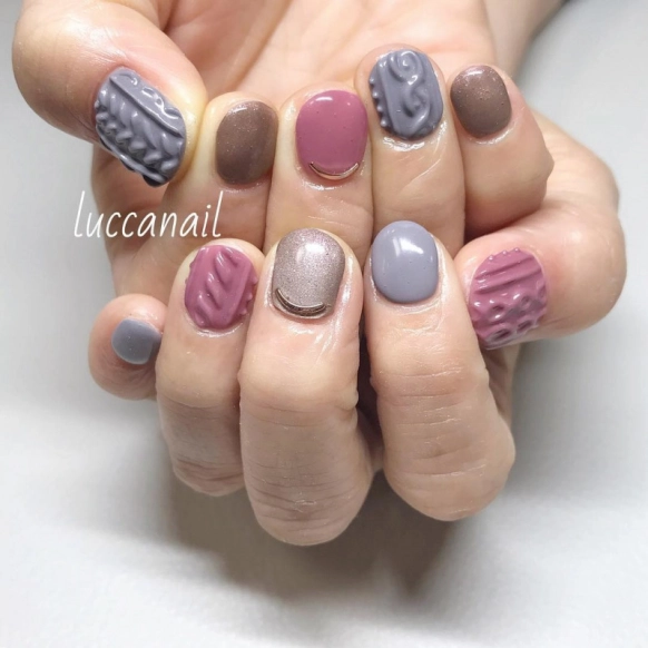 冬といえば、ニットネイル♡もちろんくすみカラーとも相性抜群です!ファッションもくすみカラーがトレンドなので、ネイルのカラーとリンクさせるのもいいですね。