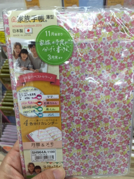 こちらの手帳は『KUTSUWA(クツワ)』の「家族手帳」。ロマンティックな花柄やおしゃれな猫と星など、かわいいデザインが豊富です。こちらの手帳も、月間スケジュールの1日のマスが区切られています!カラー別になっているので家族全員の予定を記入することができそうですね。外ポケットもついているので、幼稚園のプリントや子どもの写真など好きなものを入れてみてはいかがでしょうか。