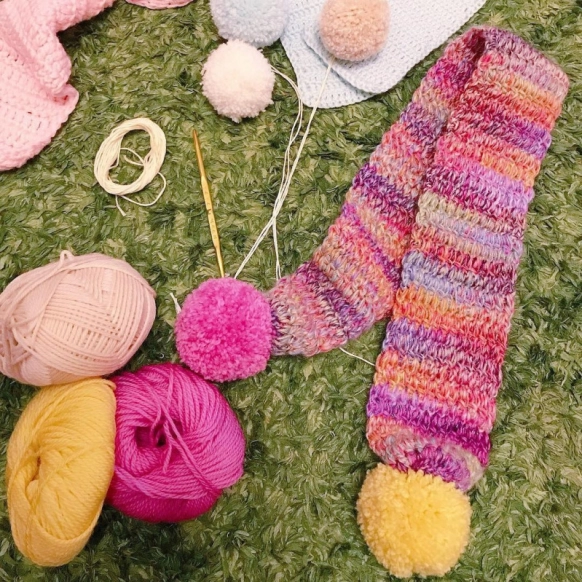材料は、作りたいマフラーのデザインによって異なります。毛糸を使った手編みで作りたい場合は毛糸1~2玉と毛糸に合った棒針、ミシンなどで縫って作りたい場合はお好みの生地・糸・ボタンなどを用意しましょう。使わないタオル生地などを使って作ることも可能です。・編み図は本やネットでGET
