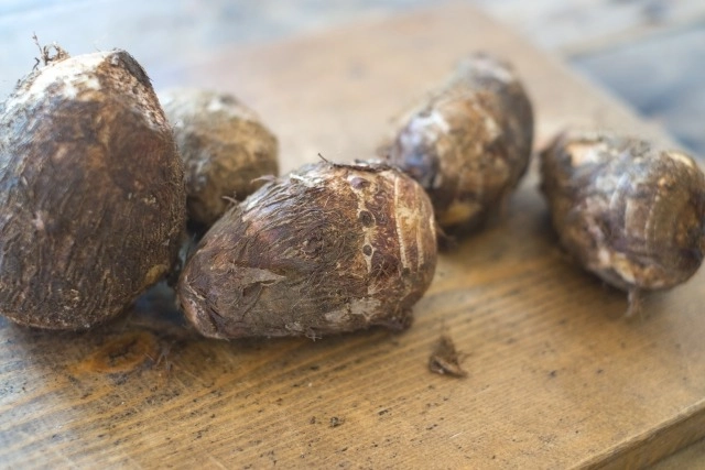 皮をむく前の里芋は、土がついたまま紙袋に入れたり、新聞紙に包んだりして、風通しのよい冷暗所に保管しましょう。里芋は温かい地域に育つ植物なので、冷蔵庫の野菜室に入れると低温障害を起こす可能性があります。なるべく常温で保存しましょう。