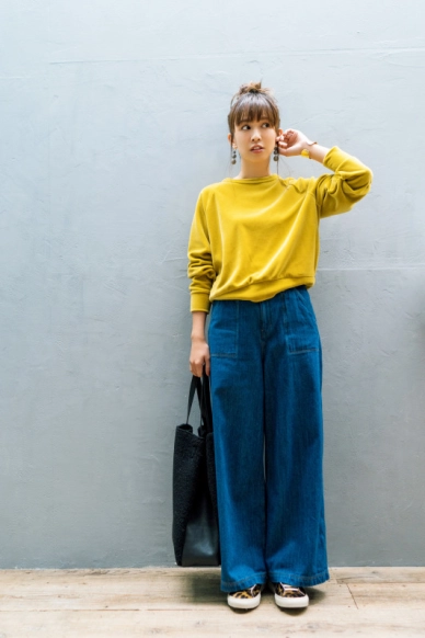 ヒョウ柄がシンプルなコーデのアクセントになり、おしゃれ感が増します。ノースリーブのトップスやワンピースにもプラスできるので、真夏でも使える応用技。カジュアルなコーデによく合うスタイルです。
