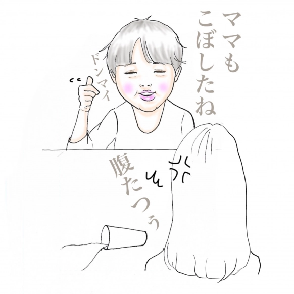 そこにすかさずドヤ顔で「ドンマイ!」イラッとする!!でもきっと私に似てるから、おっちょこちょいなのよね・・・あはは
