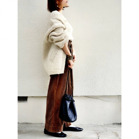オーバーサイズアイテムを使うときは、すべてのアイテムにボリュームがありすぎると太って見えてしまう可能性も。すとんとしたIラインを意識するとスッキリとコーディネートすることができます。オーバーサイズトップスとタイトスカートの組み合わせや、すとんと下に落ちるシルエットのパンツとの組み合わせなら今年らしいコーデに仕上がります。