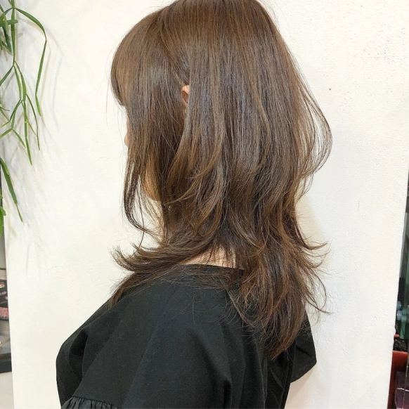 レイヤーを入れる位置によっても表情が変わるマッシュウルフ。首元に沿うようにレイヤーをいれれば、抜け感のある軽やかなロングヘアに♡見る角度によっても印象が変わります。