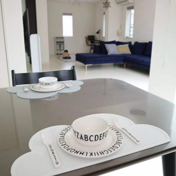 シリコンスポンジは気体や液体をほとんど通さないという特性もあります。水をはじき、サッと拭き取るだけで簡単に元の状態に。キッチンに使用するアイテムの特性としても最適なものとなっています。写真は食卓で使用するマットと食器が一体になっているもの。雲やカエルのデザインがキュートです。こぼしても丸洗いできるため、子どものランチョンマットとして人気が高いアイテムとなっています。
