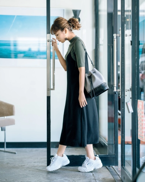 冬は、室内と外の温度調節が難しいシーズン。コートの下は、肌が見えるコーデにしてもいいかもしれませんね。ぴったりしたハイネックは、キャミワンピースやサロペットの重ね着にも使えるアイテム。ゴワつかないので、スッキリと着こなせます。