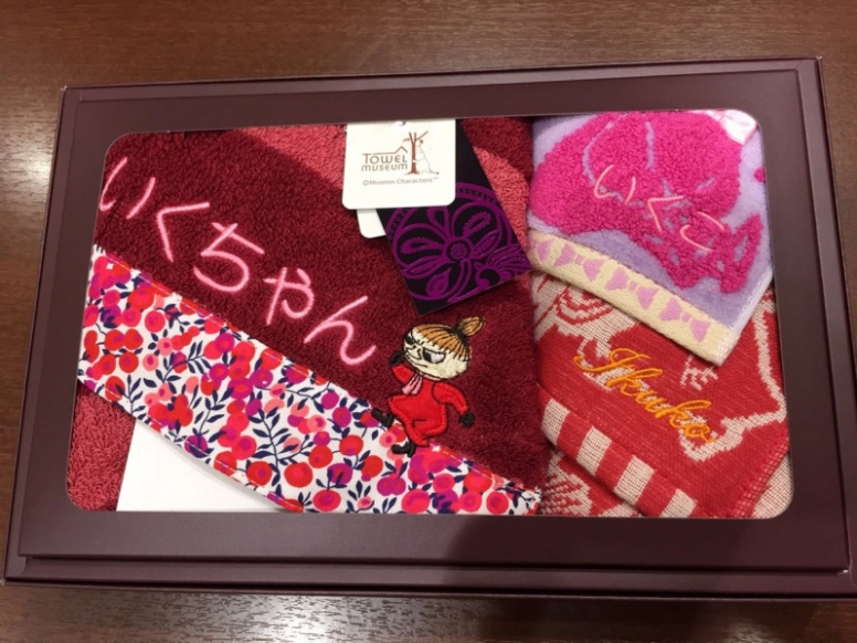 こちらはフェイスタオルとタオルハンカチがセットになったギフトボックスです。ローマ字、ひらがな、あだ名の3種類の刺繍をするところに愛情を感じますね。お世話になった職場の方に贈るのにピッタリなギフトボックスです☆