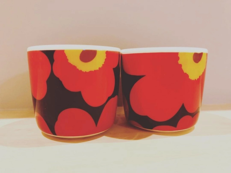 こちらは「Unikko(ウニッコ)」のラテマグセット。日本限定のものなんです!高さ約7cm、直径約7.5cmの使いやすいサイズで取っ手もついていないので、飲み物だけでなくフルーツを入れてもいいですね。小物入れにしたりインテリアに使用したりもできるので、プレゼントにおすすめです。