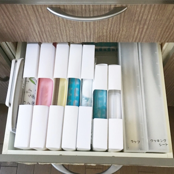 ラップをどこに収納するのか。それぞれに使いやすい場所というのがあるかと思います。中でも、冷蔵庫につけておくのが使いやすいという方は多いよう。そんな場合はラップを収納するラックを使う方法もありますが、ラップケースをそのまま冷蔵庫につけることができればアイテムをひとつ減らせてスッキリ!ラップケースにマグネット機能がついていなければ、『DAISO(ダイソー)』で販売されているマグネットテープをカットして使う方法もありますよ。