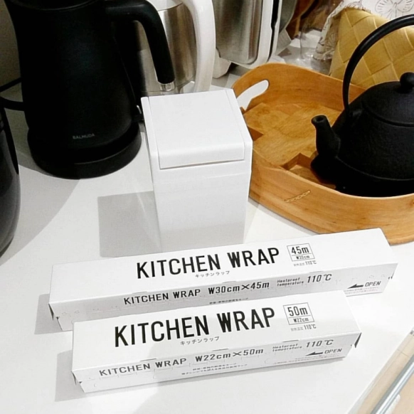 食品や調理器具、ラップやアルミホイルなど、キッチンという限られた空間にはたくさんのものが集まります。そして、それらは各々にデザインされたパッケージなので統一感はなく、カラフルだったりもしますよね。ひとつひとつを見ればたいしたことではなくても、それらが集まると乱雑に見えることも。すっきりと統一感のあるキッチンを目指すなら、できるだけカラーを統一すると良いですね。そんなとき、役に立つアイテムのひとつがラップケース。ラップも大中小のサイズをそろえると、それだけでカラーが増えてしまいますが、ラップケースを使えばカラーを統一することができます。さらに、ラップケースは繰り返し使うことで、エコな生活にもつながりますよ。