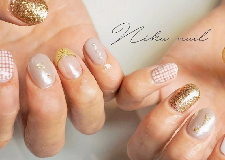 秋冬に活躍するツイード生地をモチーフにしたツイード風のチェックは、冬ネイルにピッタリ!淡いピンクがベースなので、上品でフェミニンな印象を与えてくれますよ。