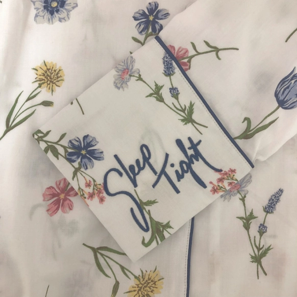 白地にフラワープリントが乙女心をくすぐるこちらのメッセージシャツパジャマ、ポーチつきなので、お泊まりパジャマ女子会にもおすすめです♡