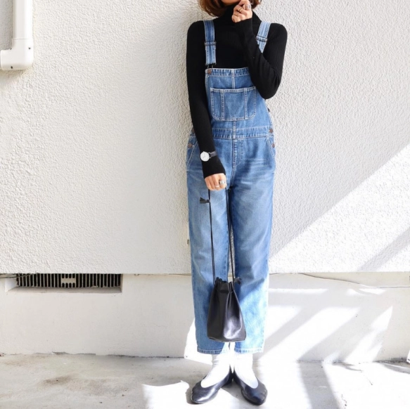 @mikiaobaさんは、『GU(ジーユー)』のサロペットに白ソックスを合わせてスタイリングされています。デニムのサロペットは幼く見えてしまうこともありますが、黒のタートルニットを合わせることで大人コーデにアップデート。小物も黒で統一して、コーデをピリッと引き締めています。また、そこに白ソックスを投入すれば、トレッドな雰囲気もプラス。冷えやすいとされている首元・手首・足首の3ヶ所をしっかりカバーしながらも、おしゃれ度たっぷりなスタイリングが実現されていますね。