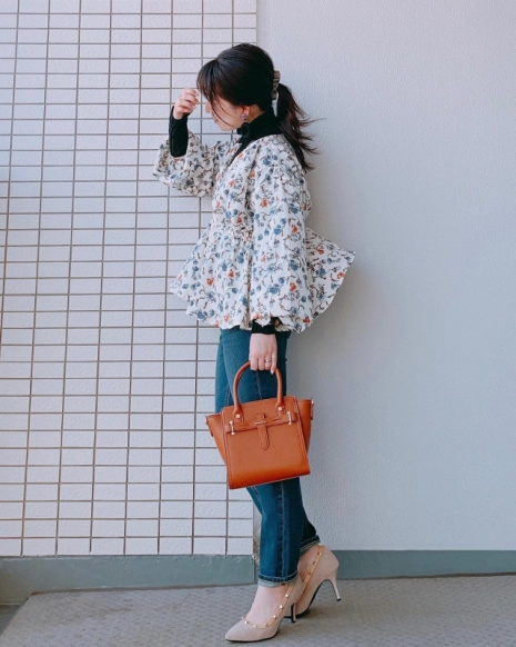 *無印のデニム×花柄トップスで春のおでかけコーデ