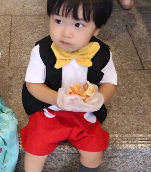 「男の子だって、ディズニーのかわいいコスプレ服を着せたい!」というママもいますよね。そんな男の子ママは、ディズニーの主要キャラクターのベビー服や動物をモチーフにしたディズニーキャラクターのコスプレ服を取り入れてみましょう。こちらの写真のように蝶ネクタイや黒ベストを着せれば、あの有名キャラクターに変身できますね。蝶ネクタイ、ベスト、赤い半ズボンはフェルトを使用すれば手作りも可能ですよ。