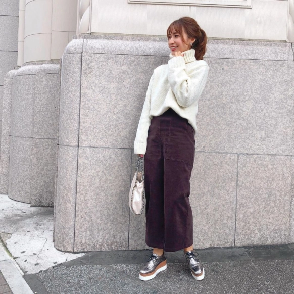 こちらは『GU』の中でも今季注目を集めている、メンズの「ローゲージタートルネックセーター」です。メンズアイテムの着こなしならではの、ゆるっとしたシルエットがおしゃれですね♡@ucmsan1205さんは、ホワイトのニットに濃いブラウンのタイトスカートを合わせています。トップスのゆるさとボトムスのタイトさがグッドバランス!スカートの濃い色味がコーデを引き締めているので、全体がぼやけずすっきりとまとまっています。いろんなカラーに合わせられる優秀なホワイトは、1枚持っておくと便利ですよ。