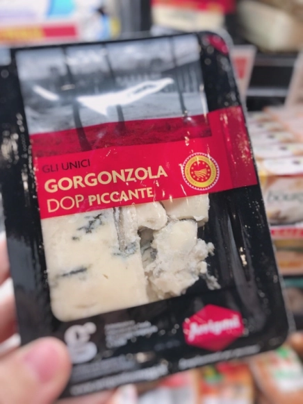 独特の香りと風味が特徴の、「アリゴーニ社 ゴルゴンゾーラ ピカンテ」。もっちりとした食感と、青カビ独特のピリッとした味わいで、チーズ好きにも高い評価を得ているチーズです。パスタソースやピザなど、料理に使ってもパンチのある味わいを楽しむことができます。濃厚なチーズをお探しのかたに、ぜひ味わってみてもらいたいチーズです。・薄くカットしたバゲットといっしょに