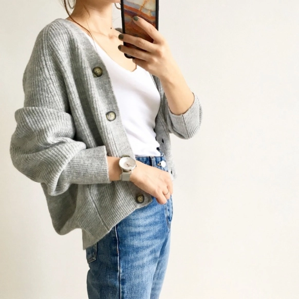 無敵カーデと称するニットカーディガンが続々発売されるGUのカーディガンの中でも、特に人気なのが、ケーブルボーイフレンドカーディガン。少し長めの丈なので、肌寒くなった秋の羽織りにぴったりです。半袖Tシャツ×パンツなどのシンプルスタイルにさらっと羽織るだけで、秋冬らしい季節感を出せますよ。